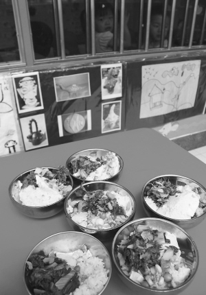 上图:珠海香洲创艺荣泰中英文幼儿园孩子的伙食(5月6日摄)。