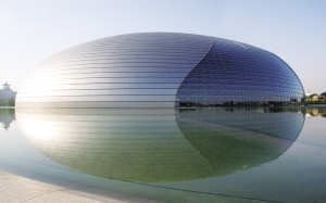 庞大的椭圆外形、柔和的钛金光泽,长安街上的“天外来客”———这就是中国国家大剧院。 总投资26.88亿的国家大剧院高46.68米,造型新颖、前卫,构思独特,是传统与现代、浪漫与现实的结合。早在20世纪50年代周恩来总理首次提出建设国家大剧院,并说地址“在天安门以西为好”,最后因财政原因没有实施。而这座“城市中的剧院、剧院中的城市”,以一颗献给新世纪的超越想象的“湖中明珠”的奇异姿态,终于如愿出现了。 建筑世界