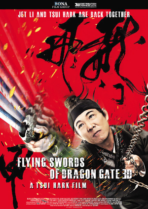 登陆《好莱坞报道》封面的《龙门飞甲》海报,以标准的中国红为背景色,以一袭黑衣的李连杰持剑侧挥的造型为主画面,配以导演徐克亲笔题写的片头毛笔汉字“龙门飞甲”……大红、武术、汉字,三大中国元素尽现其中,这在本届戛纳电影节的茫茫片海中显得尤为抢眼。