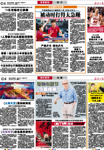 海南日报 体育新闻综合/娱乐新闻电影 020 2011-05-121 2011年05月12日 星期四