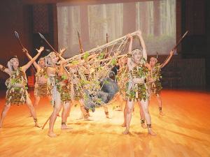 | 保亭民族歌舞团演员在表演《狩猎舞》。 本报特派记者 邵长春 摄 |