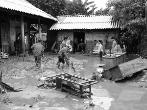 5月13日,在越南老街省,居民清理泥石流造成的淤泥。 越南老街省的多个县市12日遭受山洪和泥石流灾害,造成上百间民房倒塌,多处道路和桥梁被毁。 新华社发