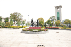 | 春晖中学校园雕塑———春晖三贤,创办春晖中学的三个人:陈春澜(中)、王佐(右)、经亨颐(左) |