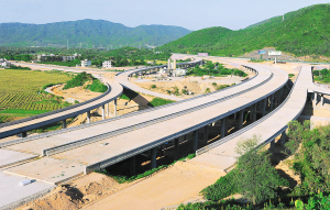 5月15日,全长2.1公里的三亚市绕城高速公路迎宾立交桥桥梁主体全部完工,将开始绿化工程及路面铺设,预计国庆通车。 本报记者 苏建强 摄