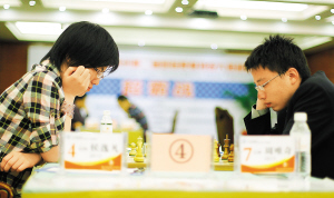 今天结束最早的对局来自王皓和余泱漪。双方在尼姆佐维奇防御中仅交战24回合便形成三次重复局面后握手言和,整盘棋耗时不足一个半小时。