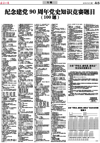 纪念建党90周年党史知识竞赛题目
