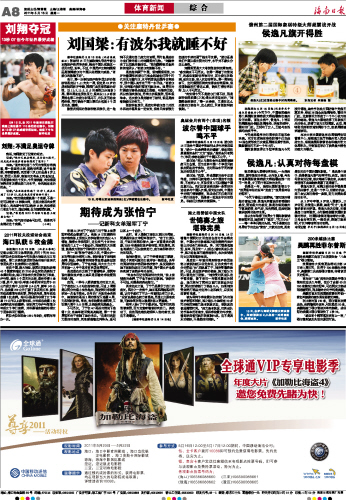 海南日报 体育新闻 008 2011-05-161 2011年05月16日 星期一