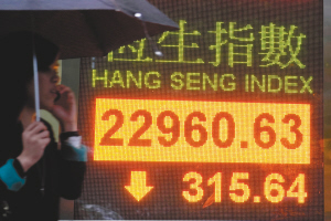 | 5月16日,香港恒生指数下跌315.64点,收报22960.63点。 新华社发 |