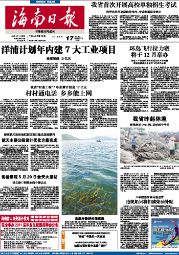 海南日报 头版 001 2011-05-171 2011年05月17日 星期二