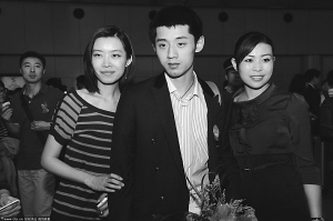 | 五月十七日,中国乒乓球队载誉归来,在首都国际机场受到了热烈的欢迎。图为女球迷与张继科合影。 小新发 |
