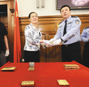 仍有3件下落不明 5月17日,北京警方将已经找到的6件被盗展品发还给故宫博物院。 据警方通报,故宫博物院被盗展品中,已经找回金嵌钻石百宝匣、金嵌钻石粉盒、金錾花嵌钻晚装石手袋、金嵌宝石龟饰粉盒、金嵌珐琅花饰粉盒、金椭圆形嵌珐琅斜格纹粉盒。目前仍有3件被盗展品下落不明。 新华社发