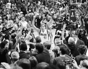 诺维茨基则表示,开场连连得手让他找到了节奏,“我就不断进攻,队友也接连给我喂球。我利用了防我队员个头不高的机会。”
