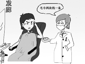 南海网友“细菌蘑菇”近日在阳光岛社区发帖称,在海口市海德路某发廊洗头时,服务员拿出两包塑料袋封好的毛巾说,他们现在是用消毒毛巾,需要收2元钱。并解释称钱不是给发廊的,是消毒公司要收费。当网友说要用发廊自己的免费毛巾时,服务员表示,只有2元的消毒毛巾。