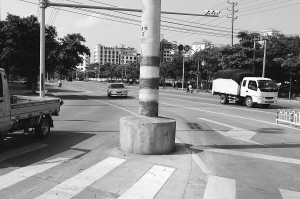 今天下午4时,在金盘路与坡巷路交叉路口转弯处,一位自称是律师的男子对海南日报记者说,目前城市发展速度很快,先有电杆后修道路的事也很常见,只要有任何一个部门认真负责起来,电杆“霸道”的问题就不难解决,在其他城市很少能见到一根电线杆耸立道路中央6年之久没人管的怪事。