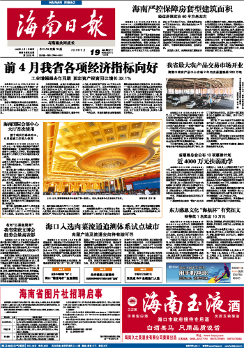 海南日报 头版 001 2011-05-191 2011年05月19日 星期四