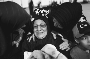 | 一名利比亚妇女在班加西抱着死去儿子的画像哭泣。 新华社发 |