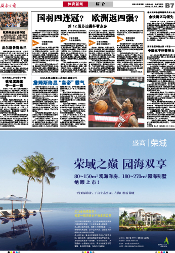 海南日报 体育新闻 015 2011-05-201 2011年05月20日 星期五