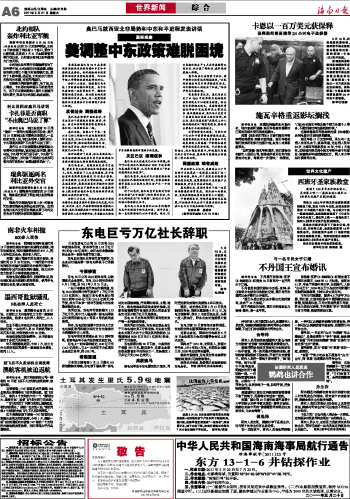 海南日报 世界新闻综合 006 2011-05-211 2011年05月21日 星期六