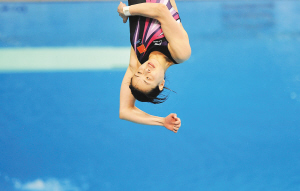 5月21日,在天津市奥体中心水滴游泳馆进行的2011年全国跳水冠军赛女子3米跳板决赛中,上海队选手吴敏霞以379.25分的成绩获得亚军。 新华社发