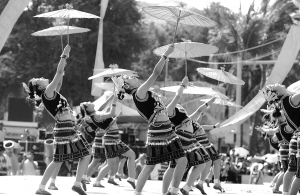 | 2011年三亚“三月三”开幕式上,黎族姑娘表演的伞舞。