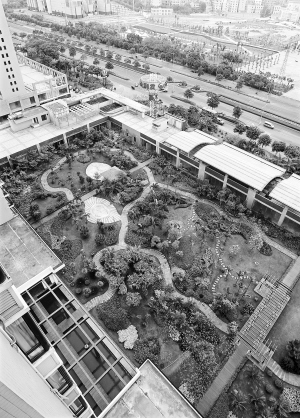| 海口市国兴大道盛达景都小区的空中花园,利用有限的空间增加城市绿量。 |