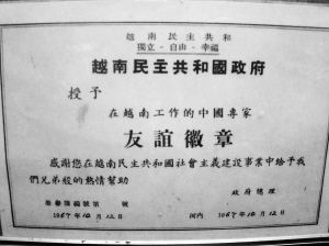 | 林秉坤获颁的“中越友谊徽章”。 |