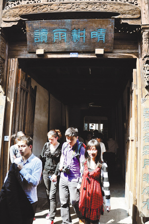 我喜欢上东栅的一个空落的宅院,大门口用笨拙的隶书写着四个字:晴耕雨读。没来由的,喜欢这四个字。当年黄磊和刘若英拍电视剧《似水流年》时,曾经在这个院子里居住,所以院落里全是当年留下的一些道具。