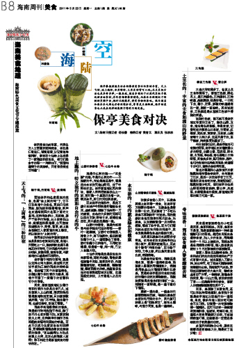保亭美食如此丰富,究竟各方人士更喜欢哪种美食,实在是仁者见仁,智者见智,让记者也难做判断,索性在七仙岭上各选择了一家酒店和农乐乐,将它们最拿手的菜一一列举如下,“若想知道梨子的真滋味,只有亲自尝过才知道”!