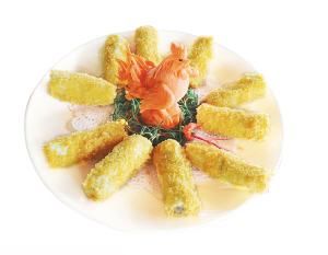七仙牛肉卷虽然是农乐乐的当家菜肴,却有所创新,春卷皮里包裹着牛肉粒、坚果和牛奶,外面蘸着面包粉,吃到嘴里,酸酸甜甜,颇有西餐的风味。满庭香农乐乐的老板张起冠告诉记者,这道菜最受欢迎,几乎是客人必点的菜。