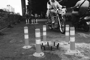 20日本报曝光海口海秀路农垦天桥附近的非机动车道上,数根20多厘米长的钢筋赫然立在路面上,频频绊倒行人和电动车一事,引起海口市交警支队负责人的高度重视,当天上午就安排相关人员赶到现场处理。