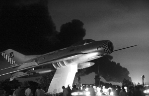 →5月23日,位于巴南部港口城市卡拉奇的迈赫兰海军航空兵基地在遭遇袭击后燃烧并冒出滚滚浓烟。新华社/法新