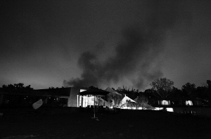 新华社报道员当天凌晨时分在的黎波里的家中,听到利比亚领导人卡扎菲驻地阿齐齐亚兵营传来15声巨大的爆炸声。这是自西方联军军事打击利比亚以来的黎波里遭受到的最猛烈的轰炸。爆炸声过后,可以看到阿齐齐亚兵营浓烟滚滚,火光冲天,北约战机在的黎波里上空盘旋。
