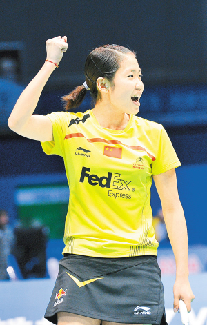 | 24日,在苏迪曼杯A组的比赛中,中国队战胜日本队获小组第一。图为中国选手汪鑫庆祝得分。 新华社发 |