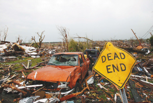 ↑ 5月23日龙卷风袭击美国密苏里州乔普林市部分地区,造成至少116人丧生。新华社/路透