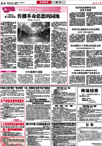 采访札记 在琼台师范高等专科学校府城校区,琼台书院古香古色的院落气韵悠然,像一位敦厚安详的历史老人,目送一代代学生怀揣着知识、梦想走入社会。而敢为人先、勇于担当的琼台精神在社会变迁、时代更迭中一次又一次被赋予不同的意义。 早期民主革命时期,受孙中山民主革命思想的影响,大批琼台学子就纷纷走上革命之路,其中影响最大的有1907级琼崖中学堂学生徐成章、徐天炳等人,在校以研究学术为名,从事反清革命运动,1909年加入同盟会,成为海南最早的同盟会会员。 随着中国共产党的成立,一大批早期民主革命人士纷纷接受马克思主义思想,成为中共党员。徐成章、王文明、杨善集等,先后于1923年、1924年加入中国共产党,并在母校发展学生党员,为琼崖党组织的建立做筹备工作。 翻开广东省立第六师范学校那段历史,一批20岁左右的进步青年,为了实现共产主义的崇高理想,曾那样决绝地与反动派以死相抗。许多人用自己年轻的生命践行着入党时许下的誓言。 1927年4月12日,国民党反动派背叛革命,在全国范围内屠杀共产党员和进步青年。琼崖四二二事变后,六师党团组织也同样遭到严重破坏,先后被杀的六师学生、党团员和校友达100多人。经过一次次血的洗礼,革命队伍中一些人被吓破了胆,离开了革命。但是,真正的革命者却像暴风雨中的海燕迎风而飞,逆险而上。 “少年智则国智,少年富则国富,少年强则国强,少年独立则国独立,少年自由则国自由,少年进步则国进步……” 100多年前,在百日维新失败后,反思中的梁启超写下《少年中国说》,把中国强盛的希望放在了青年人身上。事实证明,在琼崖地区正是一代代有理想、有担当的青年,他们不畏艰难、浴血奋斗,推动革命最终走向了胜利。 本报记者 丁静 魏如松 (本报海口5月24日讯) |