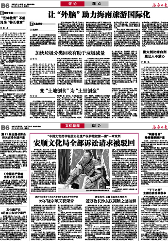 海南日报 评 论 014 2011-05-251 2011年05月25日 星期三