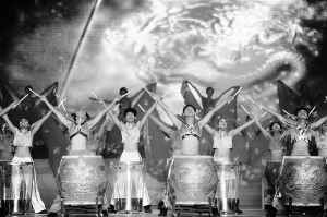 | 5月25日,在“颂党·倡廉”大型文艺晚会上,万宁市代表队在演出歌舞《鼓舞飞扬,倡廉颂党》。 特约记者 蒙钟德 摄 |