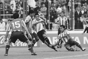 | 26日,阿根廷队在阿根廷雷西斯滕西亚进行的国际足球友谊赛中,以4:2击败巴拉圭队。 新华社发 |