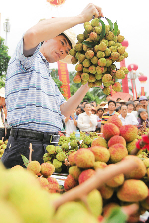 5月26日上午,海口电子农务特色大比拼系列———三门坡荔枝大比拼在三门坡镇红明农场举行。本次大比拼活动是第九届中国荔枝龙眼交易会暨首届海南红明荔枝文化节的主要活动之一。 本次荔枝大比拼活动以单穗果枝的荔枝个数、5个单果的总重量、表皮、色泽美观度、果实病虫害测定、果实甜度测定等环节进行排名。 图为评委在给各个代表选送的荔枝评比打分。 本报记者 李英挺 摄 (相关报道见A3版)