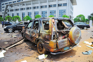 | 5月26日拍摄的抚州市临川区政府外爆炸现场。 新华社记者 周科 摄 |