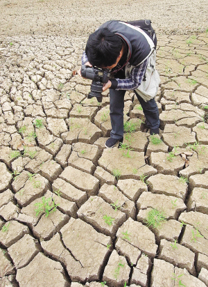 | 记者在江苏盱眙县古桑乡旱区拍摄干涸开裂的水塘塘底。 新华社发 |