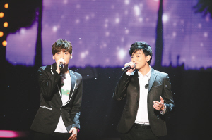 当晚最有看点的助唱嘉宾,当数陈晓东和李易峰合唱的《比我幸福》。导演组特意为两人做了相类似的服装造型,两位帅哥往台上一走,尚未发声,台下粉丝就已惊声尖叫,全场观众相当兴奋。