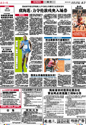 海南日报 体育新闻 007 2011-05-281 2011年05月28日 星期六