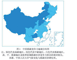 注:深色代表高碳地区;浅色代表中碳地区;白色代表低碳地区。高、中、低碳地区是按照省域低碳经济竞争力排名的相对划分。 |