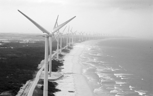 | 海南正以前所未有的力度开发清洁能源,打造“低碳海南”。图为位于文昌市东部海岸的海南第一个兆瓦级的文昌风力发电厂。