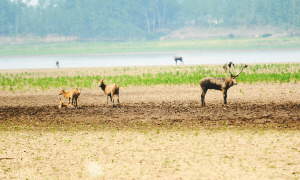 5月30日,几只麋鹿在石首麋鹿国家级自然保护区内觅食。 湖北石首麋鹿国家级自然保护区位于长江新旧河道的夹角处,总面积2.3万亩。目前,生活在这里的近400头麋鹿正遭受着前所未有的干旱危机。 新华社发