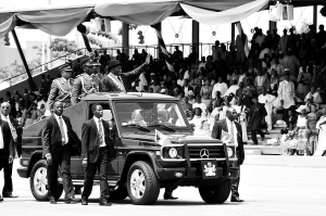 一兵营炸弹爆炸至少12人死亡 5月29日,尼日利亚新当选总统古德勒克·乔纳森向观众挥手致意。 当日,尼日利亚新当选总统古德勒克·乔纳森在首都阿布贾雄鹰广场宣誓就职。中国国家主席胡锦涛特使、铁道部部长盛光祖等出席了就职典礼。来自南非、乌干达、津巴布韦、加纳、多哥、塞内加尔、利比里亚、马里等国家的元首或政府首脑出席了就职典礼。 就职数小时后,尼北部包奇市一座兵营当晚发生炸弹爆炸,造成至少12人死亡,另有20多人受伤。 新华社发
