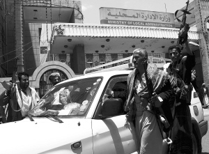 | 五月二十九日,在也门首都萨那,部落武装分子从地方行政部撤出。