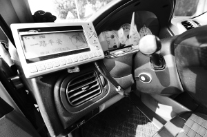 | ↑海口一辆出租车上安装了GPS,画圈处是报警按钮。 本报记者 古月 摄 |