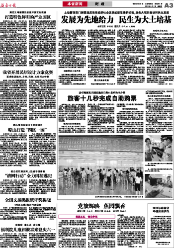 海南日报 本省新闻 时 政 003 2011-06-021 2011年06月02日 星期四